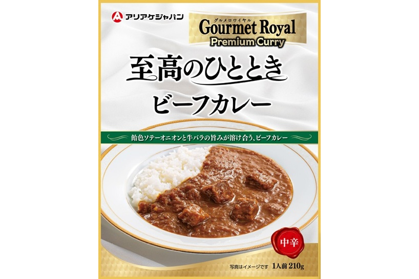 20種類以上のスパイスと、ソテーオニオンをたっぷり使用した特製ソースに牛肉がゴロゴロと入ったビーフカレーです。品質にこだわり抜きアリアケジャパンが本気で作り上げたレトルトカレーです。「GR」グルメロワイヤルシリーズはアリアケジャパンの独自ブランドです。